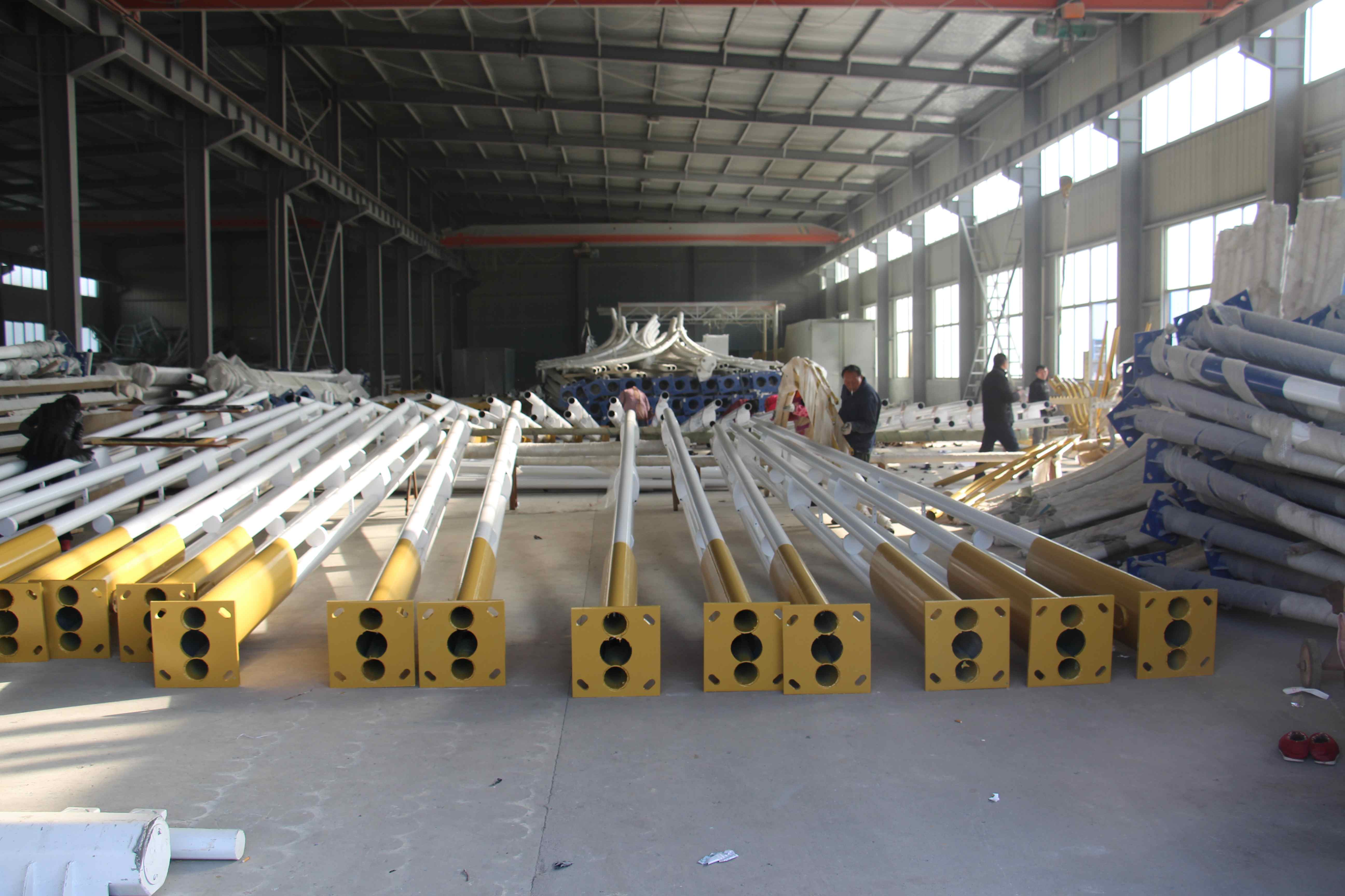 高郵市捷通交通器材有限公司位于揚(yáng)州北郊送橋開(kāi)發(fā)區(qū)。公司占面積20000平方米,建筑面積12000平方米。 二千年以來(lái),以鋼代木和水泥桿已風(fēng)行世界,我國(guó)各地也紛紛建立錐桿廠(chǎng),以漂亮的錐桿代替了過(guò)去的和水泥桿,裝點(diǎn)了一條條的公路和街道,美化了環(huán)境,照亮了人間成為各地新建和改造道路的不可缺少的配套設(shè)施。路燈的千變?nèi)f化,已成為各地路燈生產(chǎn)商和建設(shè)者的追求。 但現(xiàn)有的路燈,均在燈頭及底座上變化;燈頭款式雖多,但在燈桿上均無(wú)變化,只有光身錐桿和光身直桿,十分單一。以我公司多年對(duì)管材深加工設(shè)備的認(rèn)識(shí),加上全公司員工的不懈努力,成功設(shè)計(jì)制造了花式錐桿的機(jī)械設(shè)備,生產(chǎn)出竹節(jié)、六花
